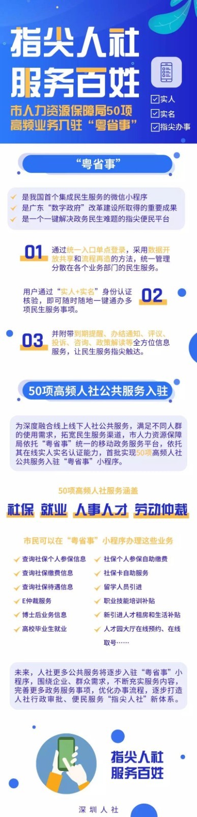 查社保、領(lǐng)補貼……都可手機辦!據(jù)深圳人社微信公號消息,有50項高頻人社業(yè)務(wù)已入駐“粵省事”平臺!快來看看都是什么業(yè)務(wù)吧