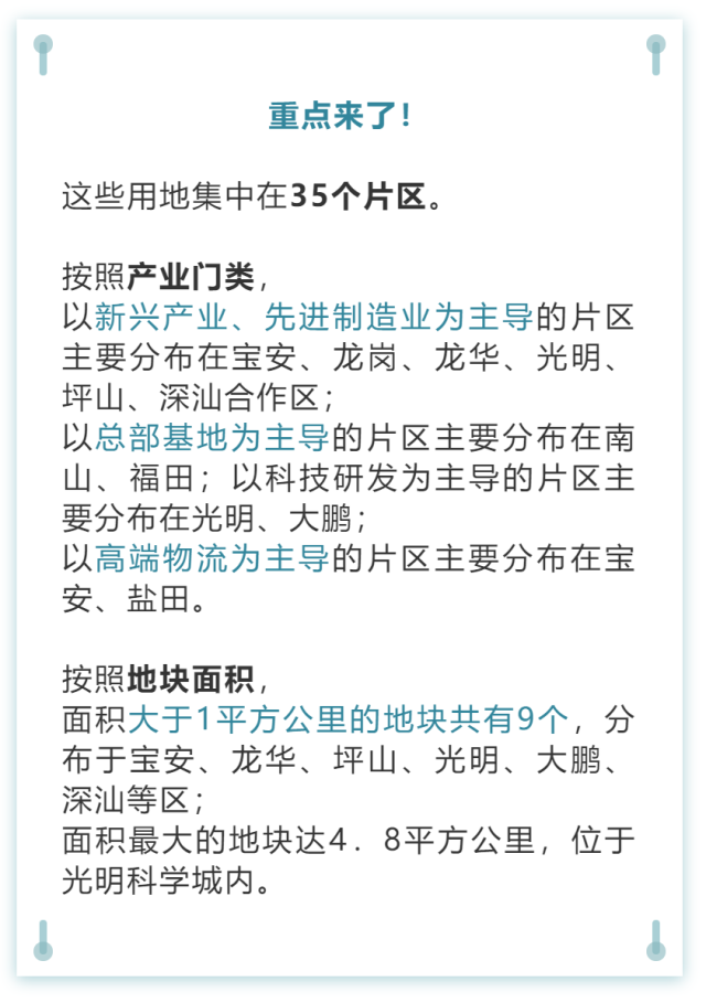 根據(jù)梳理,此次可供應(yīng)產(chǎn)業(yè)用地共35塊,總面積超過30平方公里。其中深圳市域范圍內(nèi)可供應(yīng)產(chǎn)業(yè)用地約25平方公里,深汕合作區(qū)可供應(yīng)產(chǎn)業(yè)用地約5平方公里,未來凡是符合深圳產(chǎn)業(yè)導向,符合高質(zhì)量發(fā)展要求的企業(yè)和項目都將得到充足的空間保障。