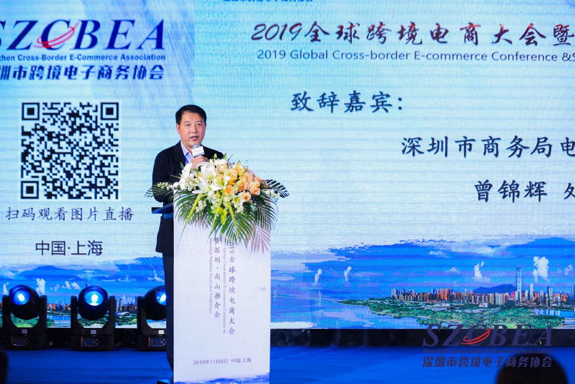 深圳市商務(wù)局商務(wù)處處長(zhǎng)曾錦輝致開場(chǎng)辭。2018年深圳跨境電商交易額達(dá)603.3億美元(約合人民幣3992.3億元),同比增長(zhǎng)20.3%??缇畴娚痰某掷m(xù)高速增長(zhǎng)在推動(dòng)深圳傳統(tǒng)外貿(mào)模式的變革、確立國(guó)際貿(mào)易地位上有著突出作用。曾錦輝表示:“深圳市商務(wù)局將繼續(xù)在理論研究、對(duì)外交流合作和模式創(chuàng)新實(shí)踐上對(duì)全國(guó)跨境電商的發(fā)展給予鼎力支持。”