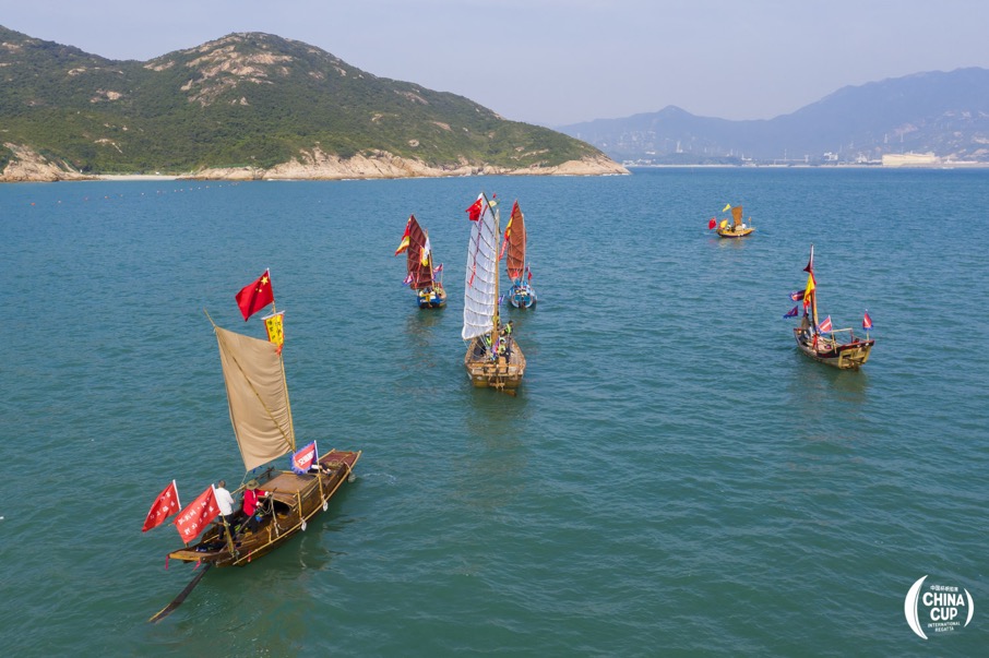 中式傳統(tǒng)帆船亮相中國(guó)杯帆船賽。(組委會(huì)供圖)