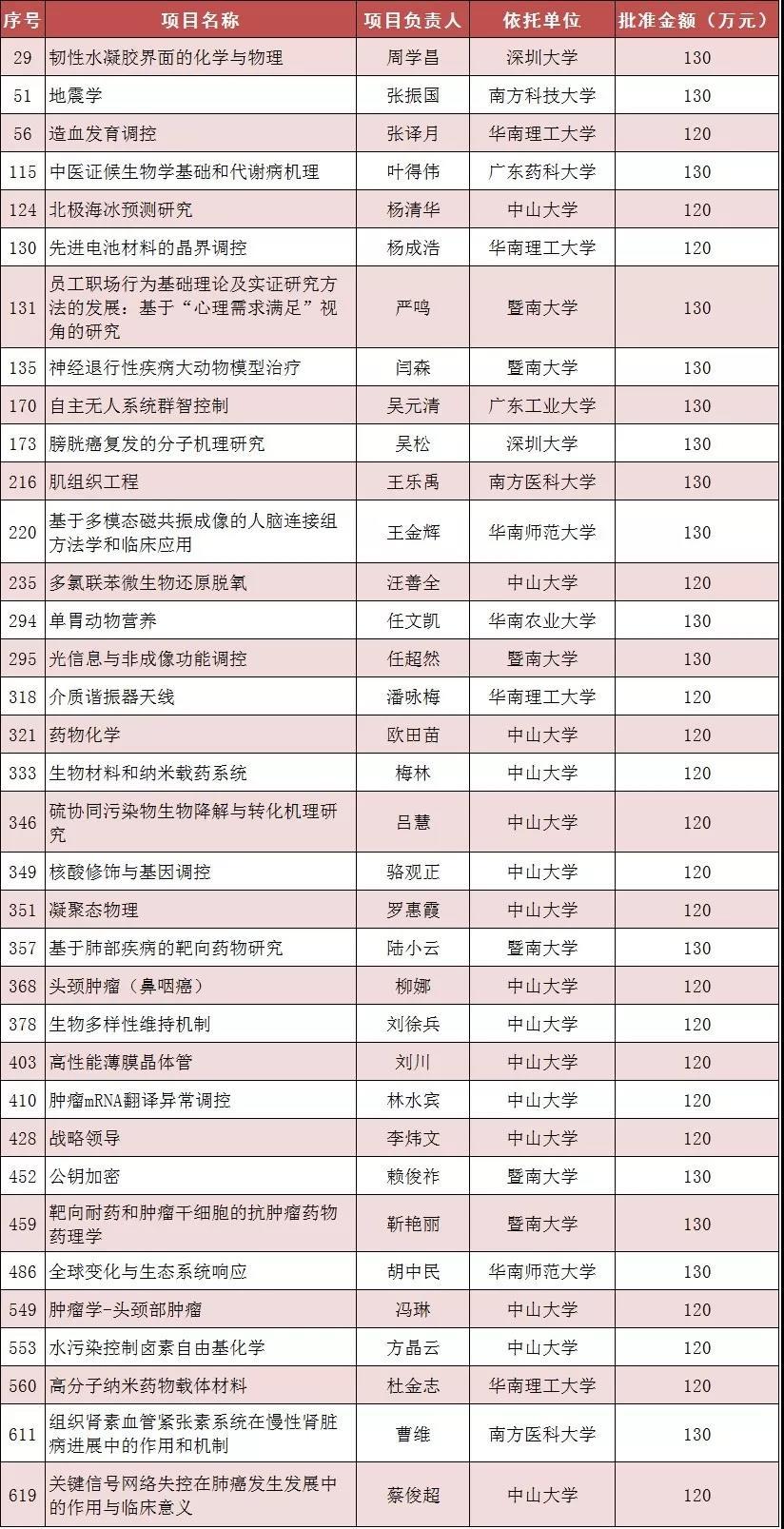 深圳大學2個,分別是:韌性水凝膠界面的化學與物理(項目負責人:周學昌);膀胱癌復發(fā)的分子機理研究(項目負責人:吳松);