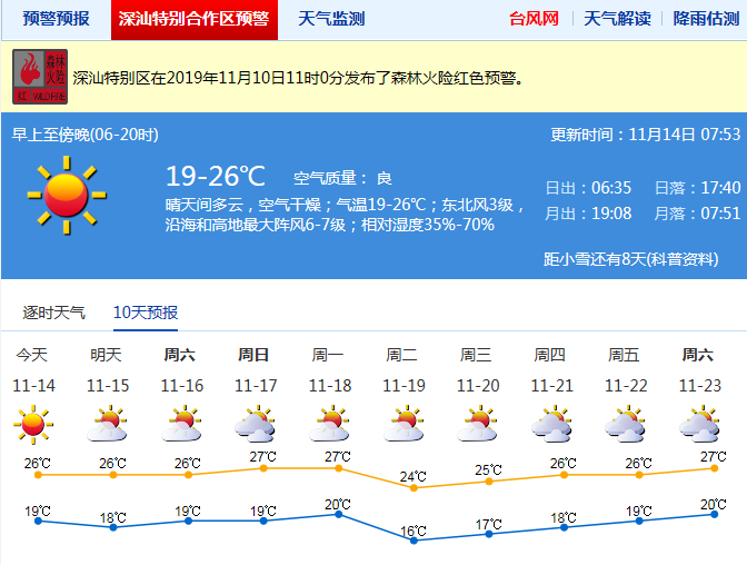 氣象專家提醒,近期空氣非常干燥,戶外活動注意補(bǔ)充水分;森林火險橙色預(yù)警信號持續(xù)生效中,請注意用火安全;沿海地區(qū)風(fēng)力較大,請注意做好防風(fēng)措施。