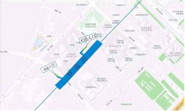 夢(mèng)海站位于前海深港現(xiàn)代服務(wù)業(yè)合作區(qū)夢(mèng)海大道(原振海路)與規(guī)劃支路交叉口下方,出入口共計(jì)2個(gè),C出入口位于鯉魚(yú)門九街北側(cè),靠近青年夢(mèng)工廠,D出入口位于夢(mèng)海大道西側(cè)