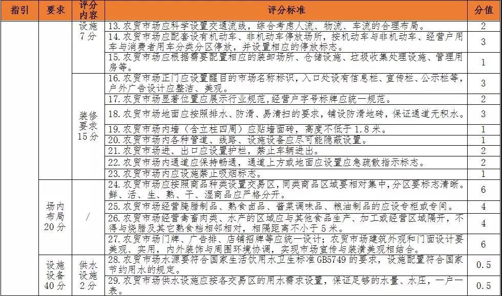 你想知道自家附近的農(nóng)貿(mào)市場達(dá)標(biāo)情況嗎?對(duì)照上面評(píng)審標(biāo)準(zhǔn)看看吧!