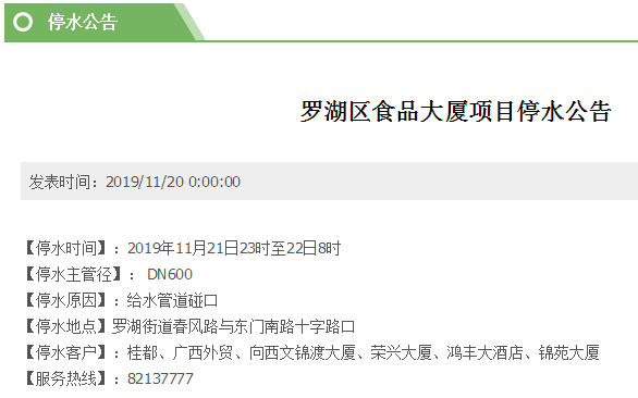 停水客戶:桂都、廣西外貿、向西文錦渡大廈、榮興大廈、鴻豐大酒店、錦苑大廈