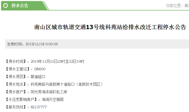 停水客戶:新桂花村4、5、6號樓,邊檢宿舍,保稅區(qū)幼兒園