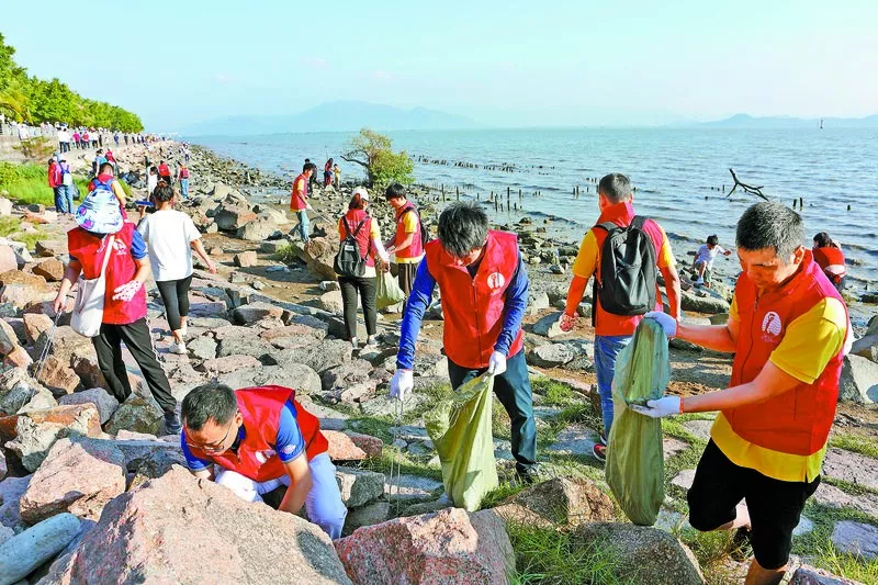▲“紅馬甲”清潔深圳灣
