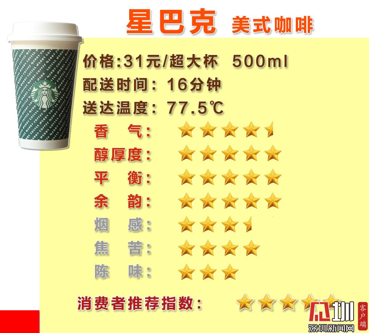 在客觀評測環(huán)節(jié),測評小組同樣圍繞咖啡單價(jià)、容積、配送時(shí)間、溫度、包裝等5個維度對四款品牌的“美式(熱)”咖啡進(jìn)行了測評。