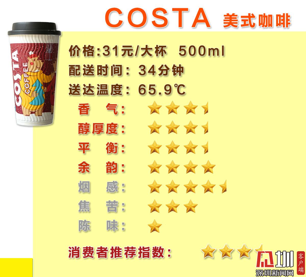 而太平洋咖啡以及Costa咖啡則分別因?yàn)闊煾?、焦苦和陳味過重導(dǎo)致最終整體評分較低,大大出乎消費(fèi)者意料。