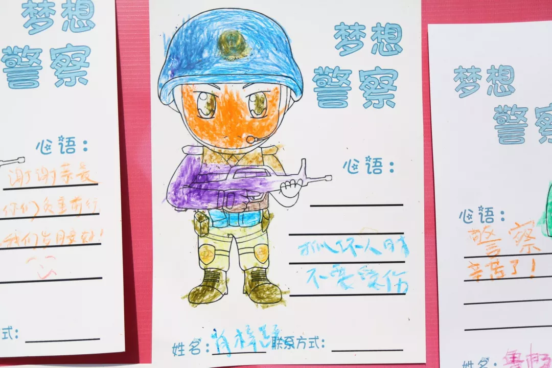 每一年,可愛的孩子們都會(huì)在這里畫出他們心目中的警察,留下暖心的話,許下“警察夢(mèng)”。