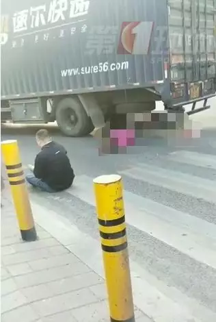騎車女子被大型拖掛車卷入車輪底