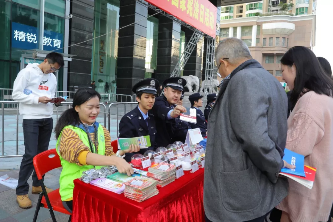 為全面貫徹落實(shí)習(xí)近平總書記全面依法治國新理念新思想新戰(zhàn)略,增強(qiáng)全社會憲法意識,弘揚(yáng)憲法精神,深圳市公安局福田分局響應(yīng)上級號召,于12月4日下午福田區(qū)馬成時代廣場開展了“12·4”國家憲法宣傳日活動。福田公安分局法制科牽頭組織人口科、治安科、刑警大隊、經(jīng)偵大隊、網(wǎng)警大隊、禁毒大隊、出入境管理大隊單位骨干民警參加此次活動。