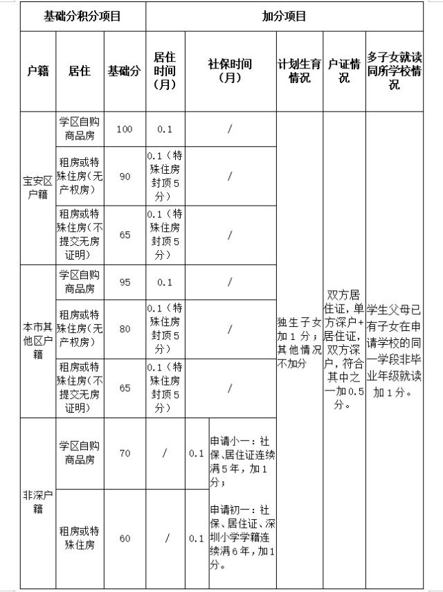2020年寶安區(qū)義務(wù)教育階段學(xué)校積分入學(xué)辦法簡表