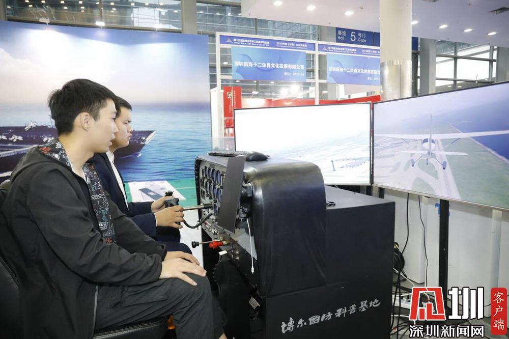市民現(xiàn)場體驗模擬飛行。
