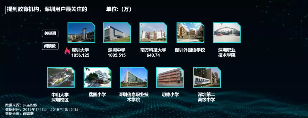 數(shù)據(jù)顯示,深圳大學(xué)、深圳中學(xué)和南方科技大學(xué)這三所教育機(jī)構(gòu)最受深圳網(wǎng)友關(guān)注。今年深圳在補齊教育短板上的力度繼續(xù)加大,尤其是在《意見》支持深圳在教育體制改革方面先行先試,高標(biāo)準(zhǔn)辦好學(xué)前教育,擴(kuò)大中小學(xué)教育規(guī)模,高質(zhì)量普及高中階段教育,充分落實高等學(xué)校辦學(xué)自主權(quán),加快創(chuàng)建一流大學(xué)和一流學(xué)科,打造現(xiàn)代職業(yè)教育體系后,深圳教育的進(jìn)步發(fā)展,未來可期。