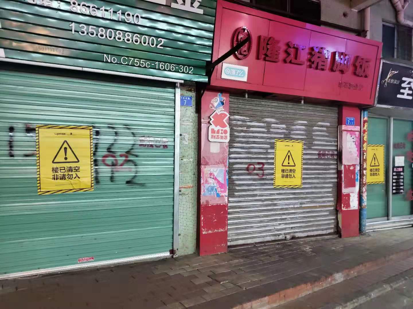但如今租戶逐漸搬走,這里的商鋪大部分也已關(guān)門,沒有住戶的樓里黑燈瞎火。一部分住宅樓已經(jīng)被清空,樓下甚至搭起了圍擋,“樓已清空、非請(qǐng)勿入”的標(biāo)語隨處可見。巷子里偶爾遇見行人,卻不見形色匆匆,似乎少人的通道,總能讓人感到愜意。