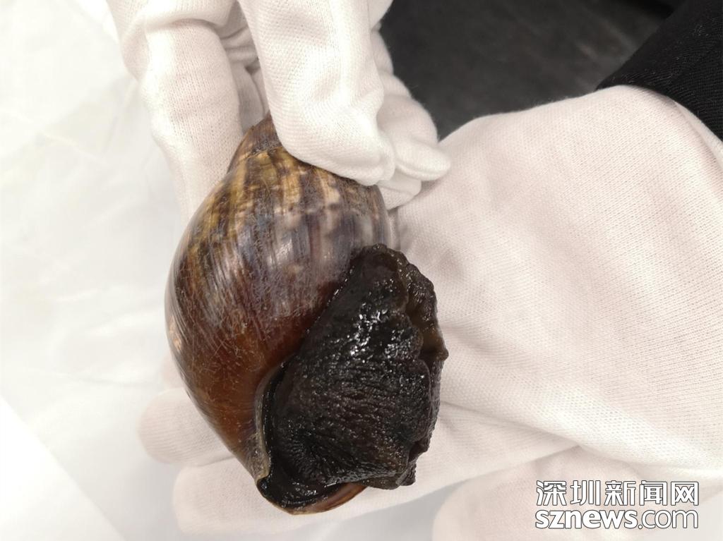 5月26日,深圳海關(guān)所屬西九龍站海關(guān)查獲一名旅客攜帶非洲大蝸牛入境案。