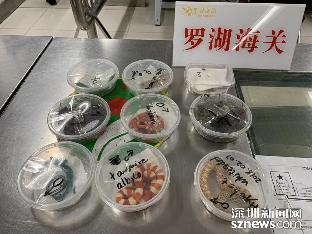 4月19日,一名旅客攜帶洪都拉斯奶蛇、龍紋翡翠蜥蜴等多個(gè)品種合計(jì)9只爬行綱動(dòng)物自羅湖口岸入境,被深圳海關(guān)隸屬羅湖海關(guān)當(dāng)場(chǎng)查獲。