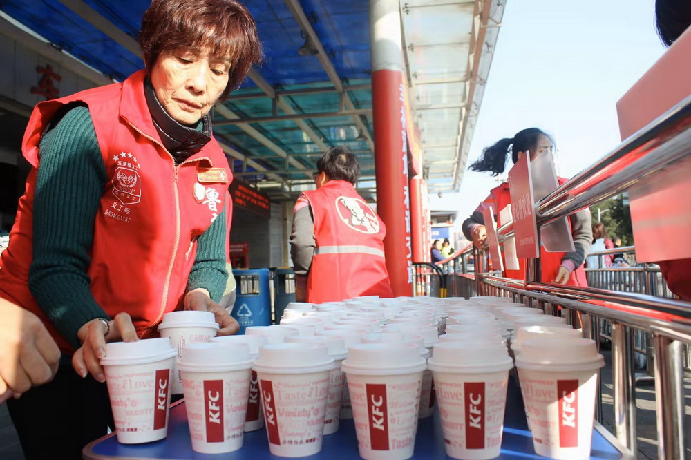 福永義工以及深圳肯德基工作人員現(xiàn)場贈(zèng)送熱飲。