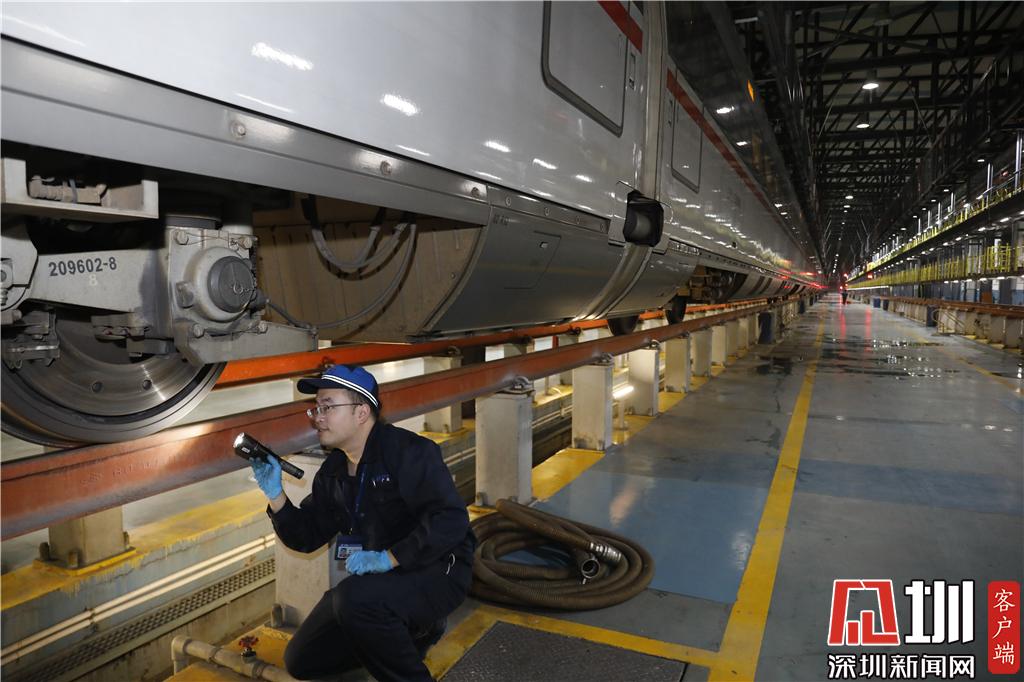 新春走基層|探秘春運里的深圳動車所 高鐵列車排隊"體檢""洗澡"