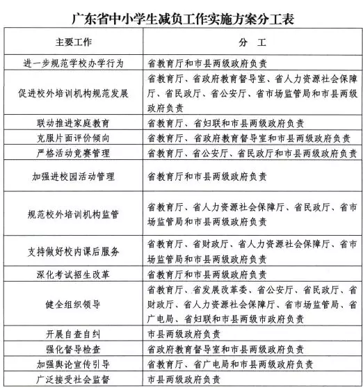 廣東省中小學(xué)生減負(fù)工作實施方案