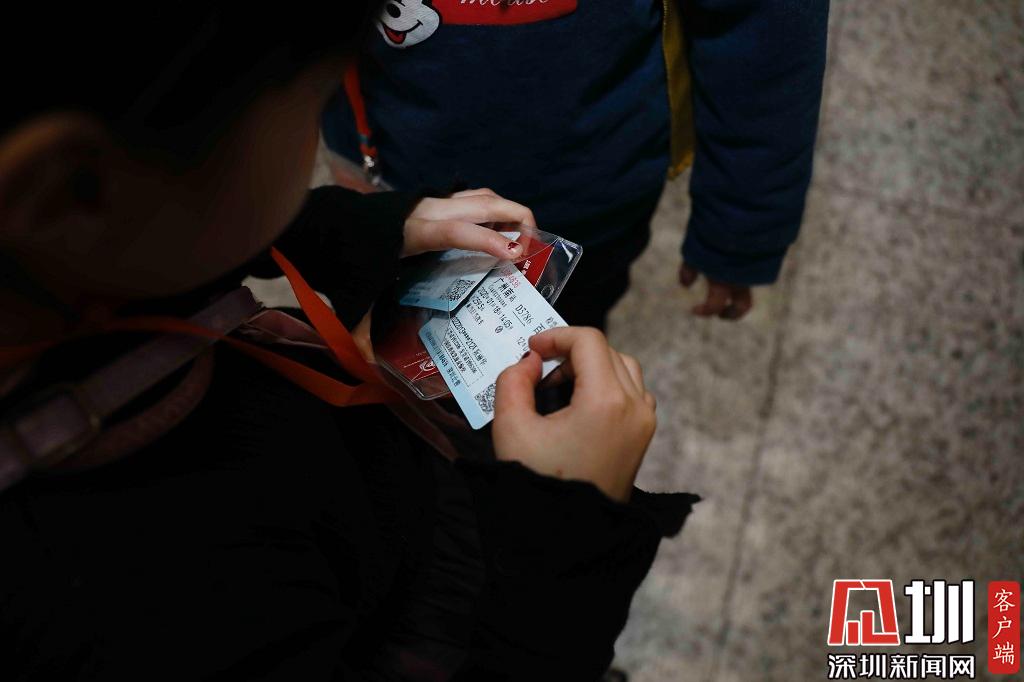一位廣西來深建設(shè)者向鏡頭展示她的車票。