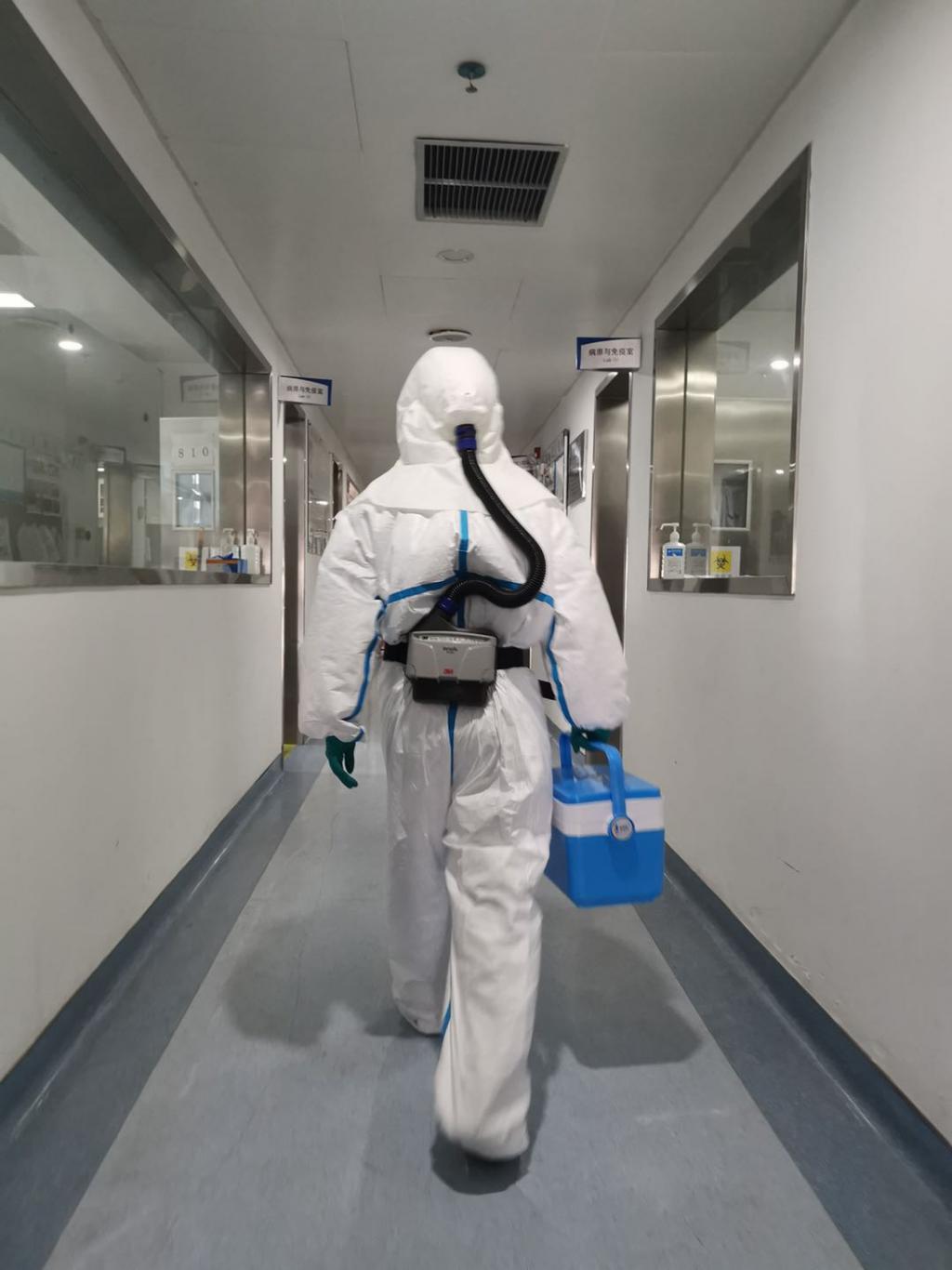 ▲大年三十,深圳市第三人民醫(yī)院實驗室正在進行確診患者的病毒載量動態(tài)檢測,他們在操作的時候穿著重達3至4斤的個人防護裝備,進去一次就連續(xù)工作4個小時左右,每次出來內衣全部濕透。