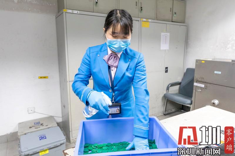 深圳地鐵車(chē)站工作人員對(duì)地鐵票卡進(jìn)行消毒。