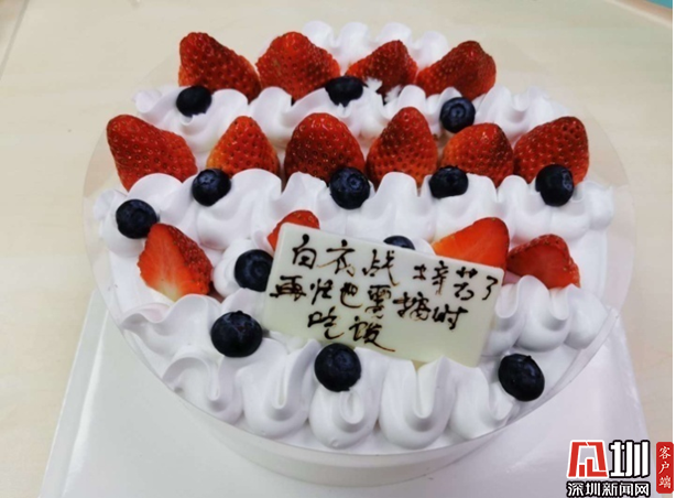 也有動(dòng)情的時(shí)刻。有不知名的患者,看著我們忙碌辛勤、連飯顧不上吃一口、連水來不及喝一口,偷偷送上一份香甜蛋糕。蛋糕上寫著“白衣戰(zhàn)士辛苦了,再忙也要按時(shí)吃飯”,沒有留下一個(gè)名字。