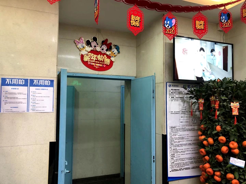 大廳的電視里播放著防疫宣傳片
