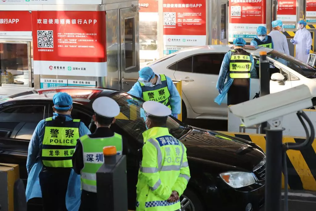 醫(yī)務(wù)人員對(duì)入深車輛乘員進(jìn)行二次測(cè)溫。