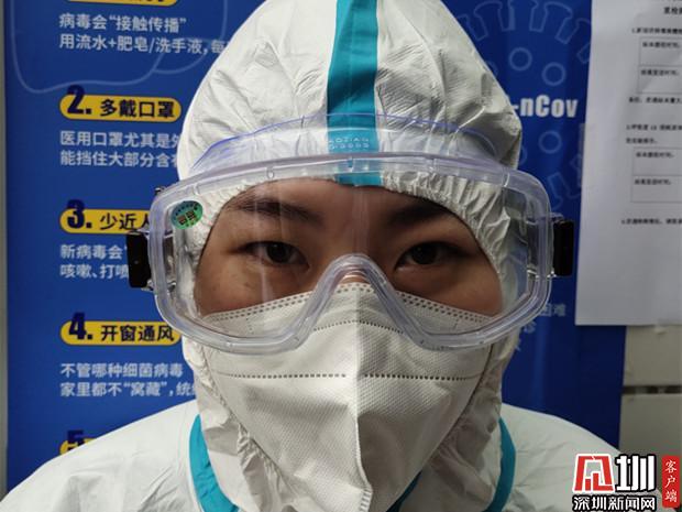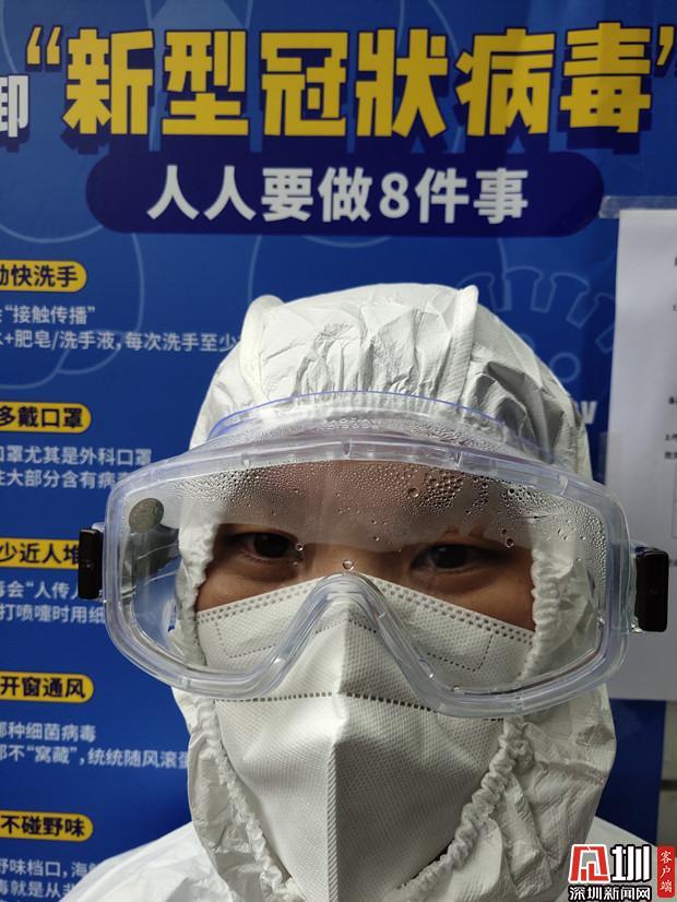 剛穿上防護服,護目鏡是這樣。