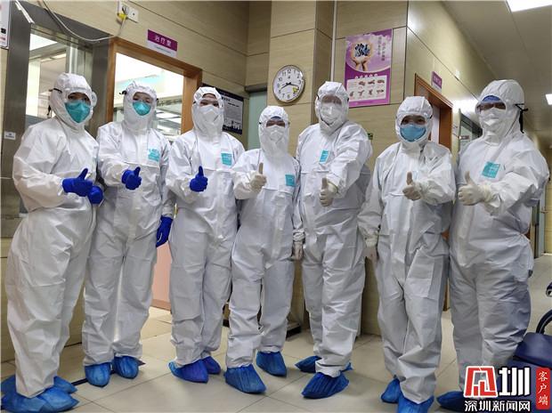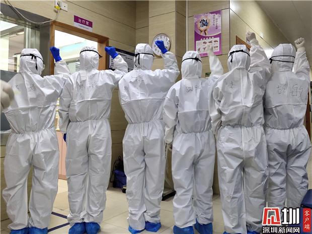 發(fā)熱門診工作人員相互鼓勵。