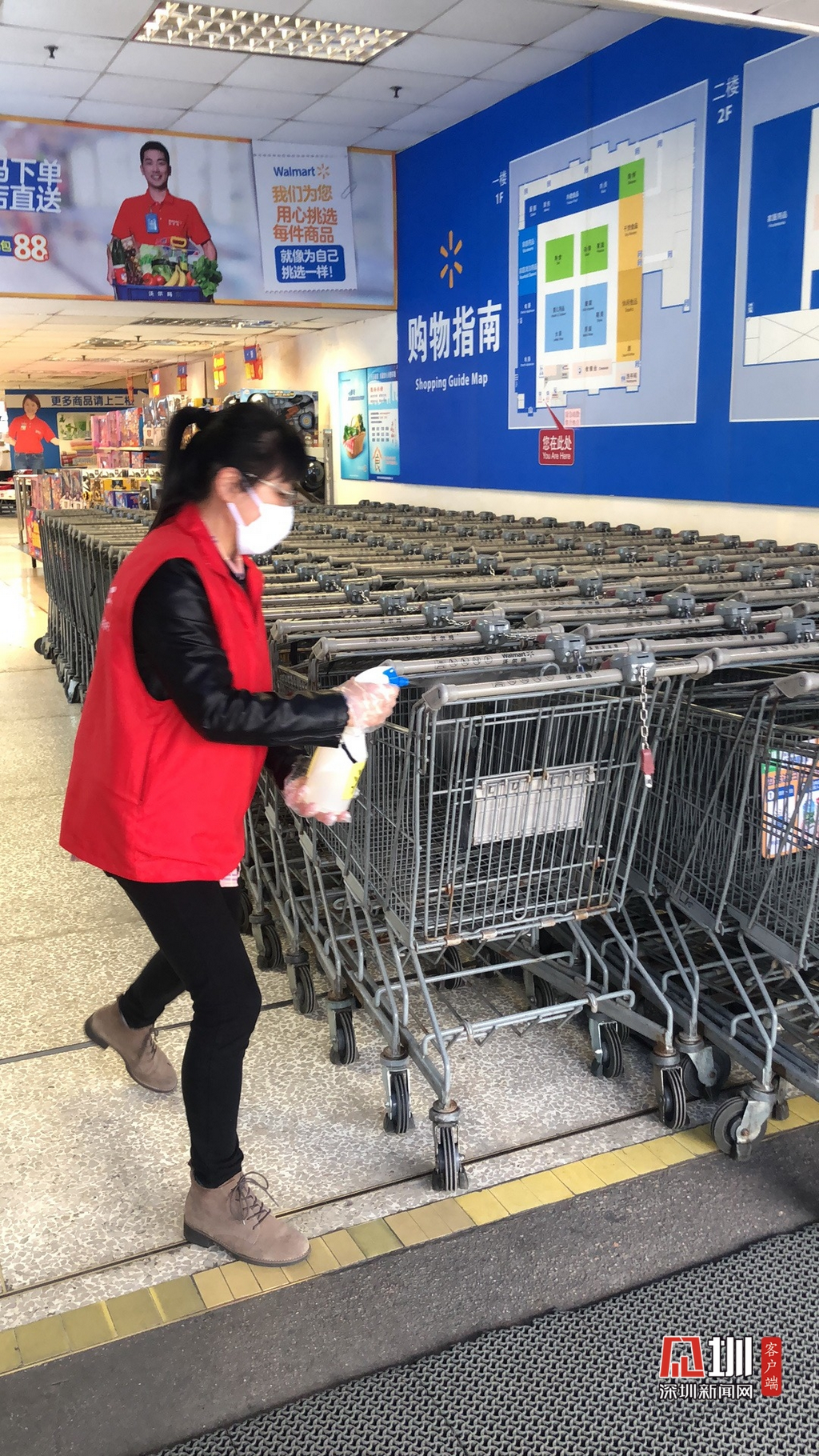 見圳客戶端?深圳新聞網(wǎng)2020年2月5日訊(見圳客戶端、深圳新聞網(wǎng)記者 林玟珊 胡津瑋)禁止商超提供“試吃”服務(wù)、禁止經(jīng)營野生動(dòng)物、定時(shí)消殺……這是市場監(jiān)管部門為強(qiáng)化食品經(jīng)營監(jiān)管做好疫情防控,對(duì)廣東商超做出的特別指引。那目前深圳商超是否有按要求做好防疫防控工作?5日,由深圳市市場監(jiān)督管理局組織的“星期三查餐廳”推出防控疫情特別行動(dòng)第四期,特意檢查景田北沃爾瑪超市。