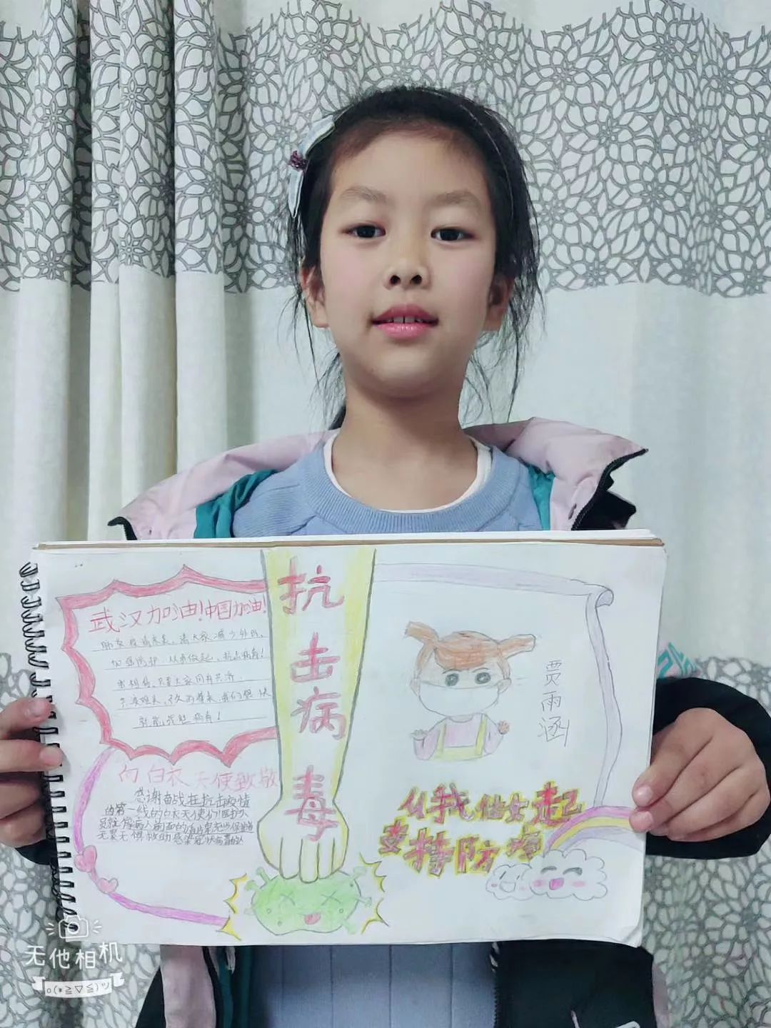 媽媽,我不會生你氣的。因為我知道,你這個女英雄太忙了,你忙著打敗病毒怪獸,帶著治愈的病人平安凱旋。——荔園小學(xué)廖芷渝