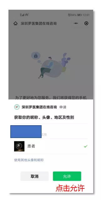 患者首次使用時,需進(jìn)行登錄與授權(quán)