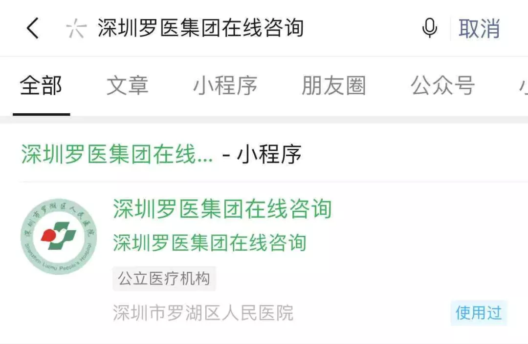 ③或者在微信右上角“搜一搜”搜索“深圳羅醫(yī)集團(tuán)在線咨詢”進(jìn)入小程序