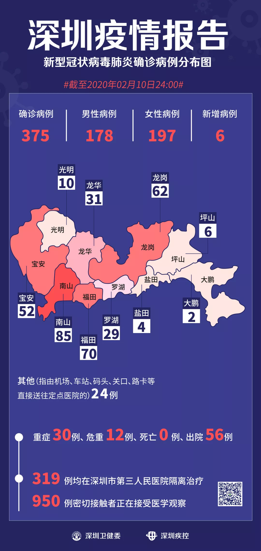 2月10日12時-24時,深圳新增新型冠狀病毒肺炎確診病例6例。