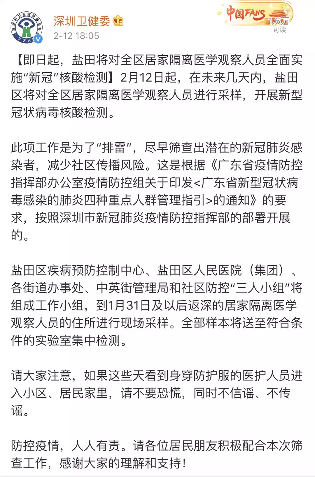徹底“排雷”!深圳免費為所有居家隔離者檢測“新冠”病毒核酸