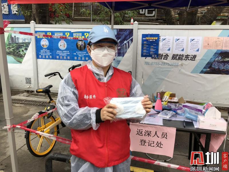 南嶺南路崗?fù)な悄蠋X村社區(qū)最大的出入口,人流、車流量大,隨著近幾日工廠企業(yè)開始陸續(xù)復(fù)工,每天出入的返深居民和車輛都絡(luò)繹不絕。羅秀蘭和李君海從2月3日開始,就“錯時”守在這個崗位上?!艾F(xiàn)在返程的人越來越多,崗?fù)ね砩弦惨兄驹刚摺!崩罹Uf,他白天工作沒有時間,就報名參加晚上的值守。