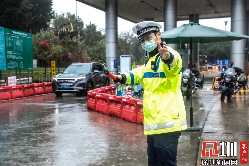 深圳交警執(zhí)勤民警引導(dǎo)車輛做防疫檢測