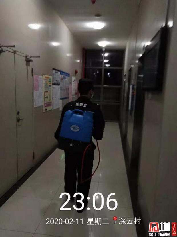 深云村物業(yè)員工對小區(qū)進(jìn)行消毒