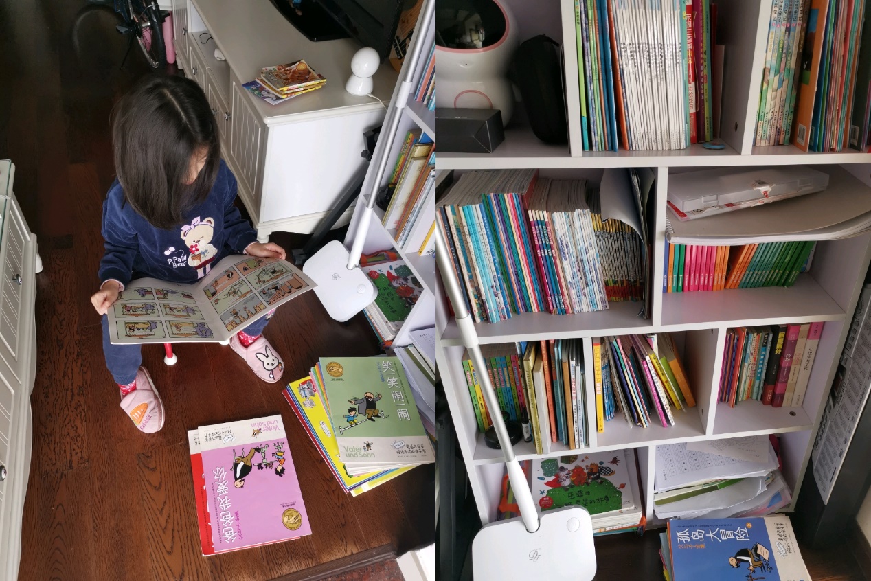 (圖二:看書(shū),她有自己開(kāi)放式的小書(shū)柜,有時(shí)候是我們陪讀)