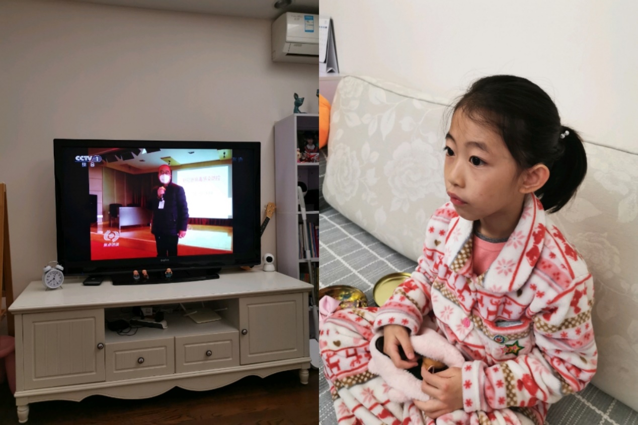 晚上固定時(shí)間一家人看新聞和焦點(diǎn)訪談,有時(shí)候有些好的文章,我們會(huì)讀給她聽(tīng)。