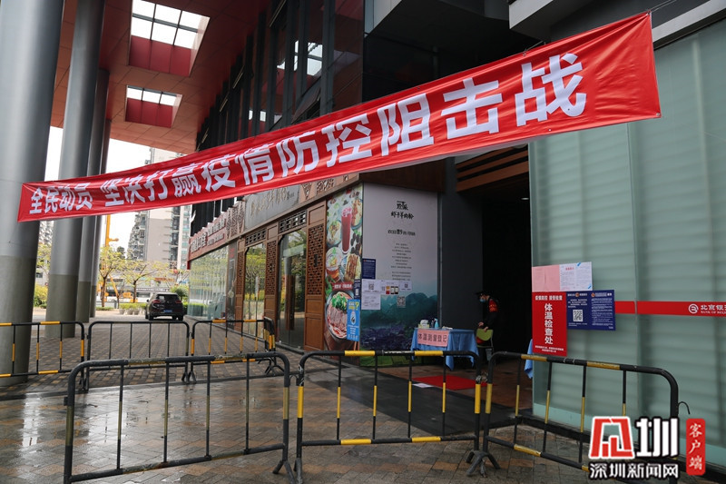 2月14日,龍崗天安數(shù)碼城內(nèi),一條關(guān)于疫情防控宣傳的橫幅懸掛在大廈進出口。