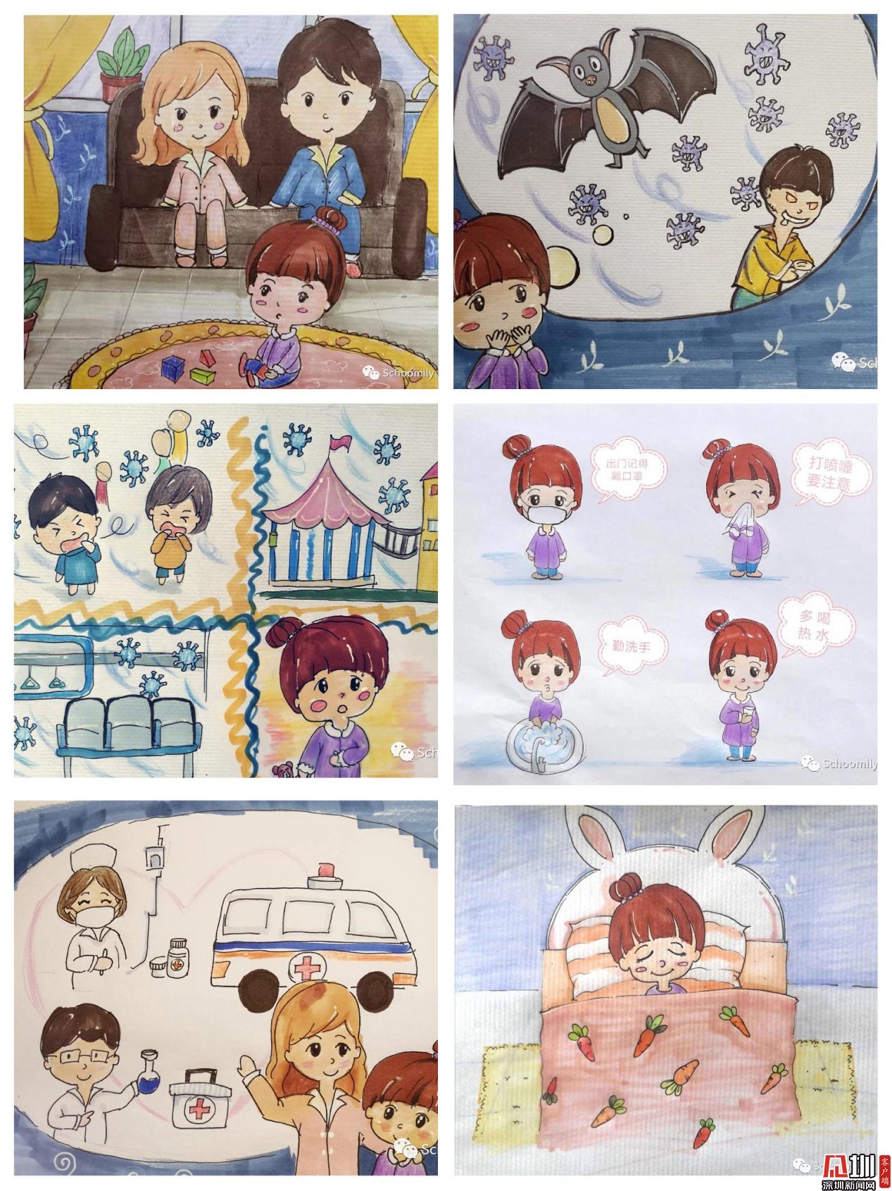 疫情打破了假期的寧?kù)o,桃小的隊(duì)員們紛紛行動(dòng)起來(lái),錄制小視頻,向先鋒致敬,為武漢加油!學(xué)生、家長(zhǎng)們也紛紛發(fā)揮自己的聰明才智,親子齊上陣,一(3)班薛然小朋友的家長(zhǎng)帶著孩子一起繪制防范新冠病毒的繪本,并配音、剪輯、制作成精美的視頻,既幫助了身邊的同學(xué),又在這個(gè)特殊的時(shí)刻陪伴和見(jiàn)證了孩子的成長(zhǎng)。