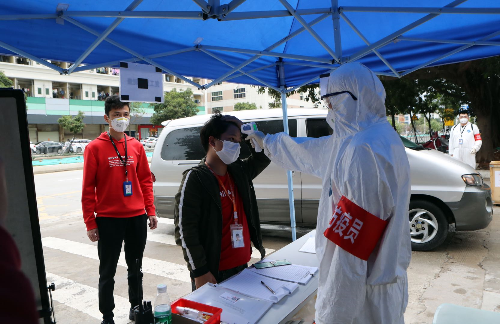 “進(jìn)入園區(qū)前,所有員工必須正確佩戴一次性口罩,自覺配合進(jìn)行體溫測量,不然不得進(jìn)入廠區(qū)?!痹陂T口執(zhí)勤的保安說。