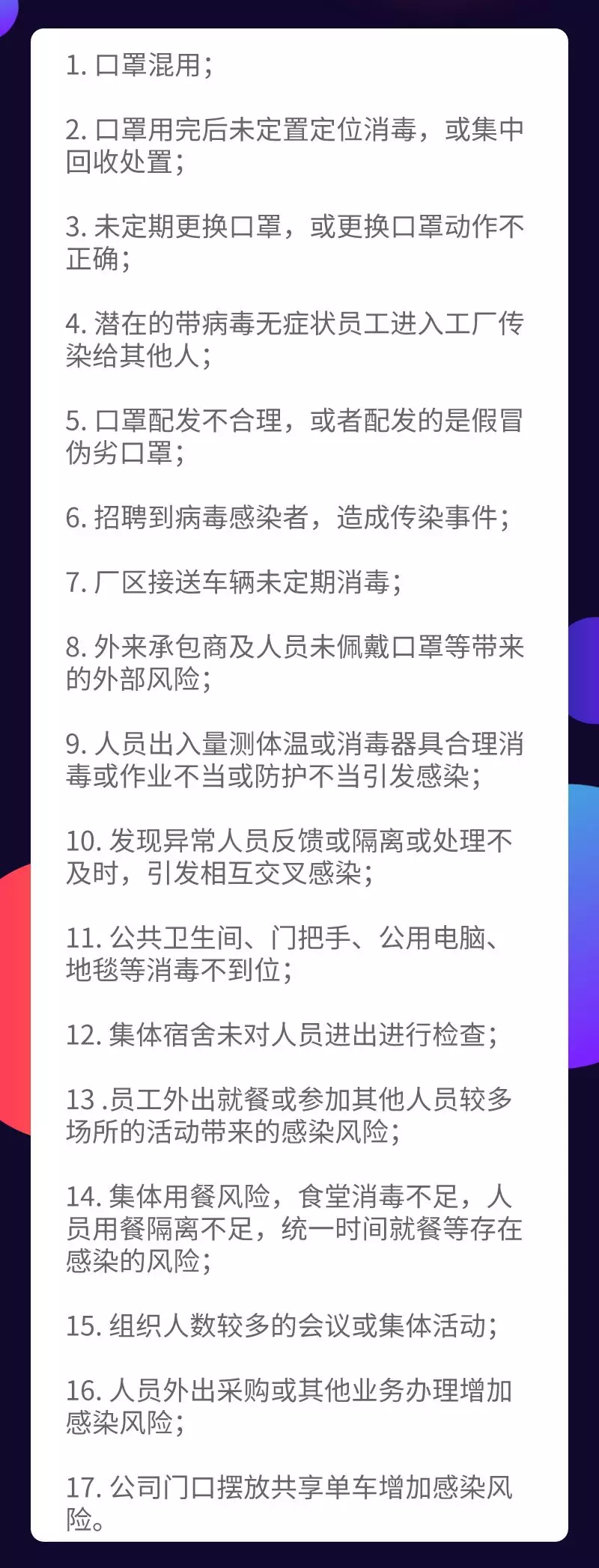疫情防控和節(jié)后復(fù)產(chǎn)復(fù)工給企業(yè)安全生產(chǎn)帶來新挑戰(zhàn),如何做好防控措施?哪些風(fēng)險(xiǎn)又要防范?員工又如何自我保護(hù)?