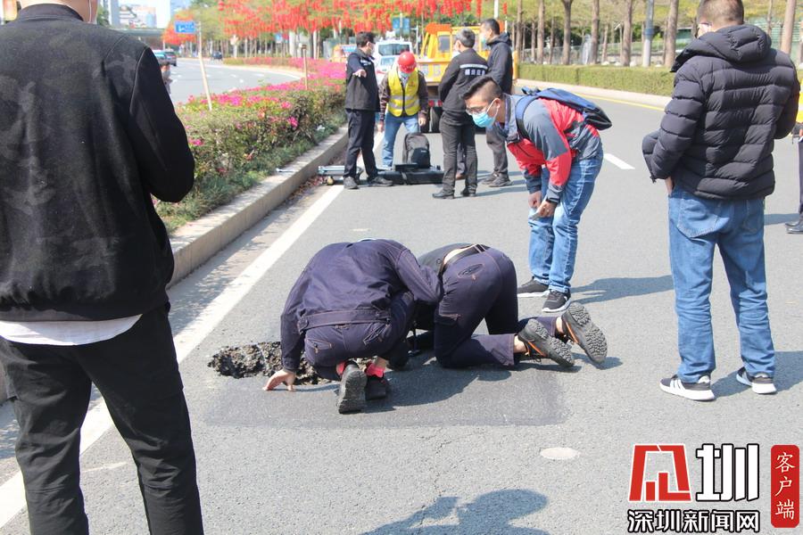 2020年2月18日9點40分,市交通運輸局福田管理局養(yǎng)護巡查發(fā)現(xiàn)深南大道西行輔道市民廣場門口路段出現(xiàn)路面塌陷,塌陷空洞面積約5~6㎡,深度約1.5~2.0米。我局第一時間上報區(qū)地防辦并趕赴現(xiàn)場做好安全圍擋工作,確保車輛和市民出行安全。同時,區(qū)地防辦牽頭我局、交警、水務、地鐵等部門進行現(xiàn)場勘察,查找地陷原因。經(jīng)勘察,該處位于地鐵2號線上方,周邊地下管道完好,該輔道路段約有40~50米路基土疏松,塌陷原因是該路段地下工程施工對地基擾動且回填土未夯實。