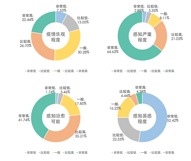 從深圳市民對(duì)疫情的感知情況來(lái)看,79.42%的受訪者對(duì)此次新冠肺炎疫情持積極態(tài)度。這種樂(lè)觀的態(tài)度尤其體現(xiàn)在深圳市民對(duì)于疾病易感程度和治愈可能的自我評(píng)估上。74.96%的受訪者表示自己感染新冠肺炎的可能性很小,認(rèn)為自己感染后能夠被治愈的人群占比更是達(dá)到了76.95%。一方面,這反映出深圳市民對(duì)于政府和醫(yī)院的疫情應(yīng)對(duì)措施的充分信任;另一方面,較低的感知易感度卻也暴露出了人們對(duì)于感染新冠肺炎可能存在僥幸心理。盡管如此,多數(shù)深圳市民還是能夠正確認(rèn)識(shí)此次疫情的嚴(yán)重性,認(rèn)為感染新冠肺炎將會(huì)對(duì)自身產(chǎn)生嚴(yán)重影響的受訪者占比達(dá)到了85.66%。
